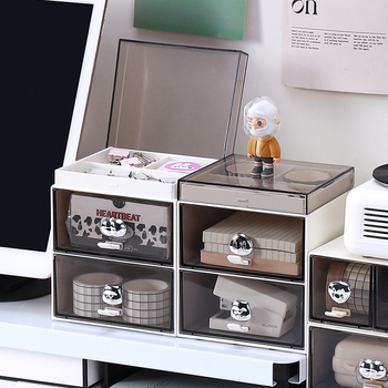 Ánh Sáng Sang Trọng Double-Ngăn Lưu Trữ Hộp Máy Tính Để Bàn Bụi Bin Cho Văn Phòng Học Tập Văn Phòng Phẩm Mỹ Phẩm Đa Chức Năng Bin